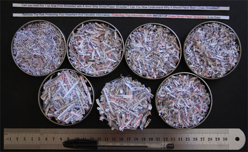 - Security 6- This is the level used by guys in unmarked buildings driving all black cars with tinted windows. If you want to really wipe your secrets from the planet, this will insure that they are gone. This is the highest level of paper shredders out there.